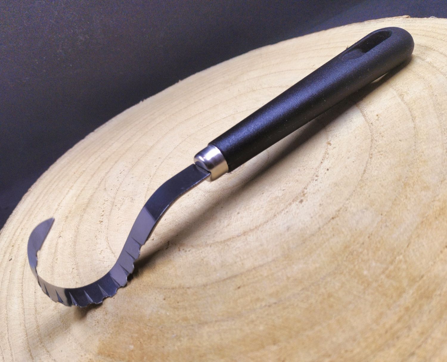 Avec sa lame en inox courbé et dentelée, vous pouvez décorer vos assiettes avec des copeaux de votre beurre. Vous pouvez aussi l'utiliser comme vide légume, en enlevant les pépins par exemple des tomates, aubergines..