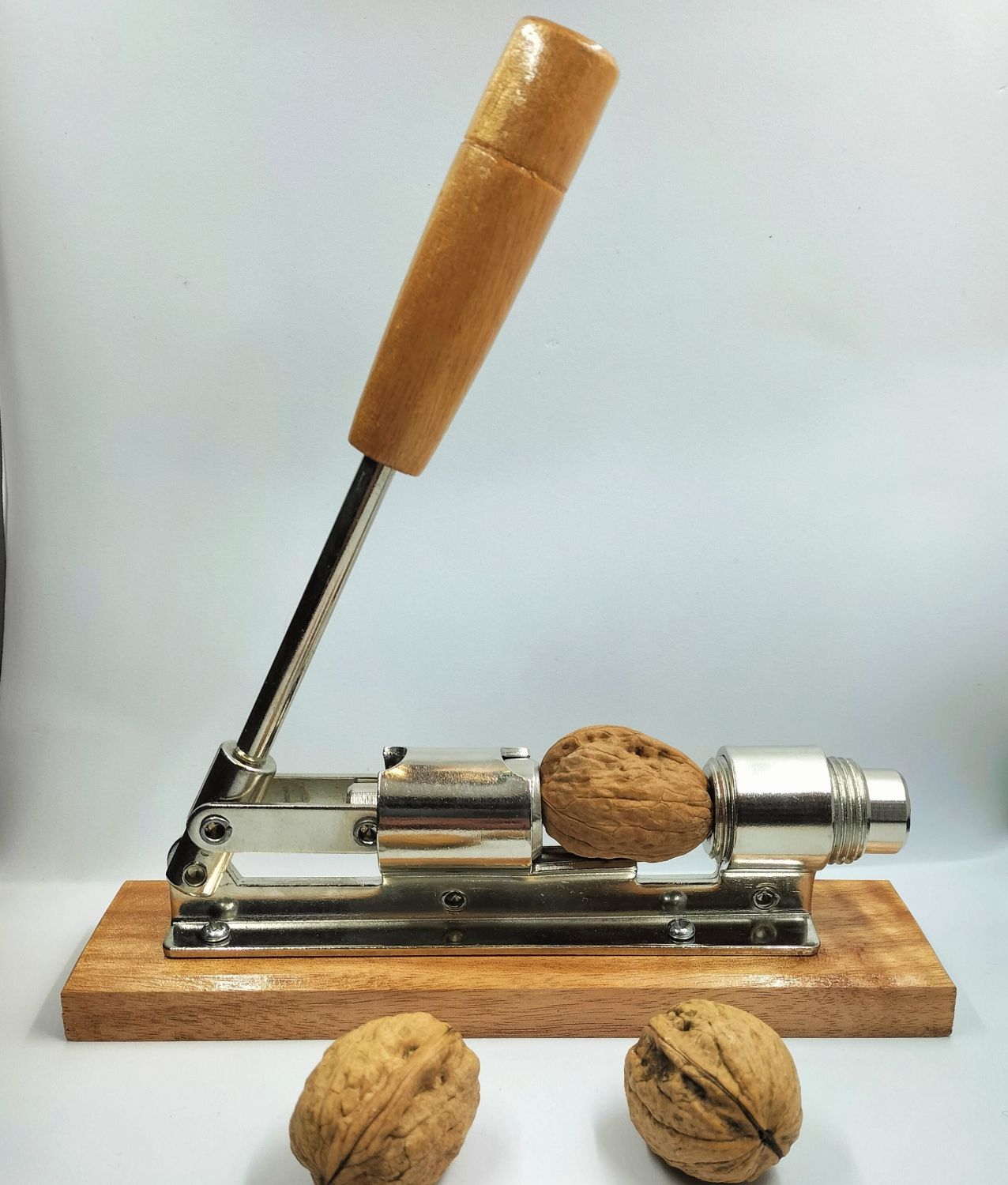 Cet ingénieux casse-noix en inox à levier en bois permet d'ouvrir noix, noisettes, amandes et autres fruits à coque.
