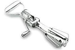 Batteur-mélangeur à manivelle en inox. Idéal pour battre et émulsionner toutes vos préparations. Longueur : 30 cm