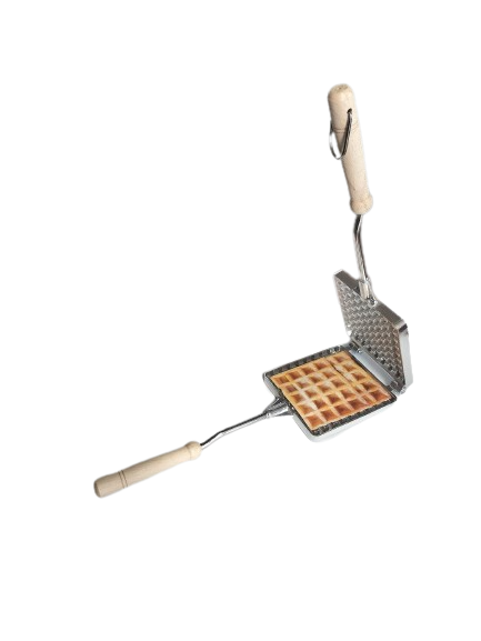 Fer à gaufres en aluminium, utilisable sur feu de bois, cheminée, barbecue, feu de gaz. Preparer vos meilleures gaufres a une taille de 13 cm sur 12 cm rapidement, facilement.