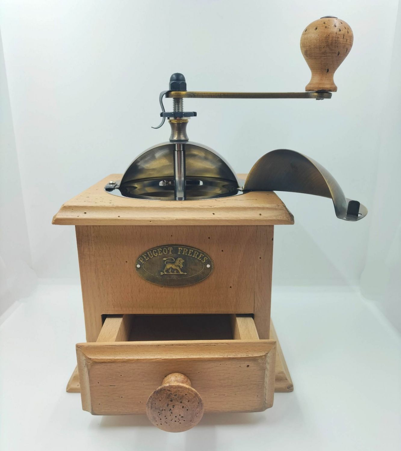 Moulin à café finition antiquaire pour un café fraichement moulu, équipé d'un réglage de mouture classique par une molette de réglage. Le mécanisme de votre moulin a été spécialement conçu pour sublimer les saveurs du café. Pensez à nettoyer régulièrement avec un chiffon doux.