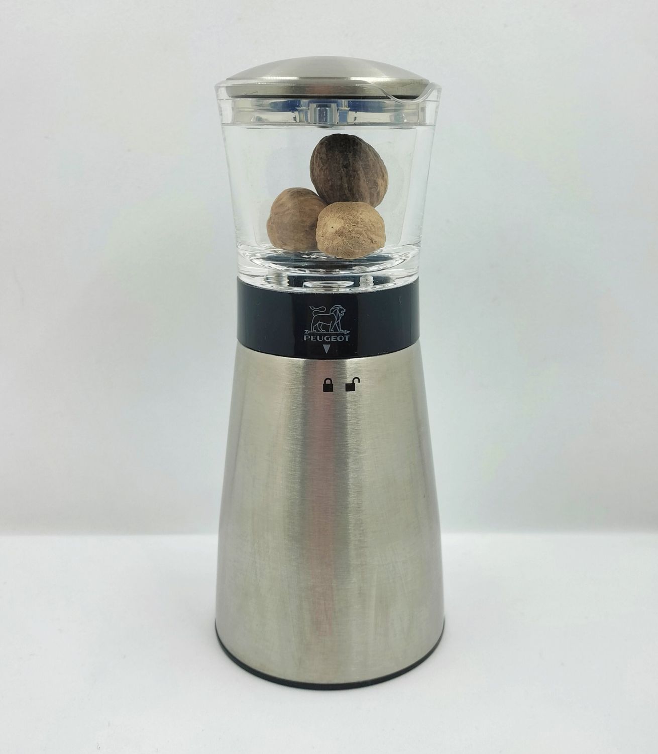 Moulin disposant d'un duo de lame et râpe pour libérer toutes les saveurs de la noix de muscade. Bouchon aimanté avec un réservoir en inox dont une capacité de 3 noix de muscades inclus.