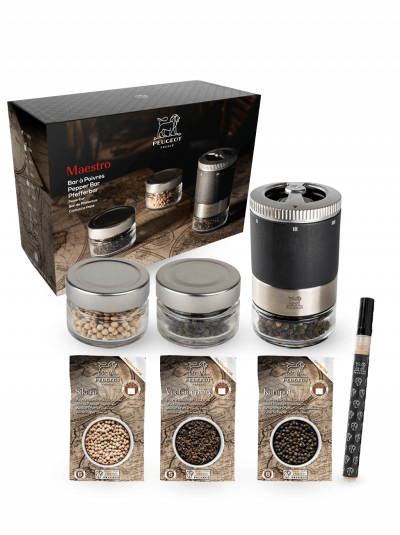 - 3 Sachets de poivre premium (20g Poivre noir Kampot, 20g Poivre blanc Sikara, 20g Poivre sauvage Voatsiperifery)