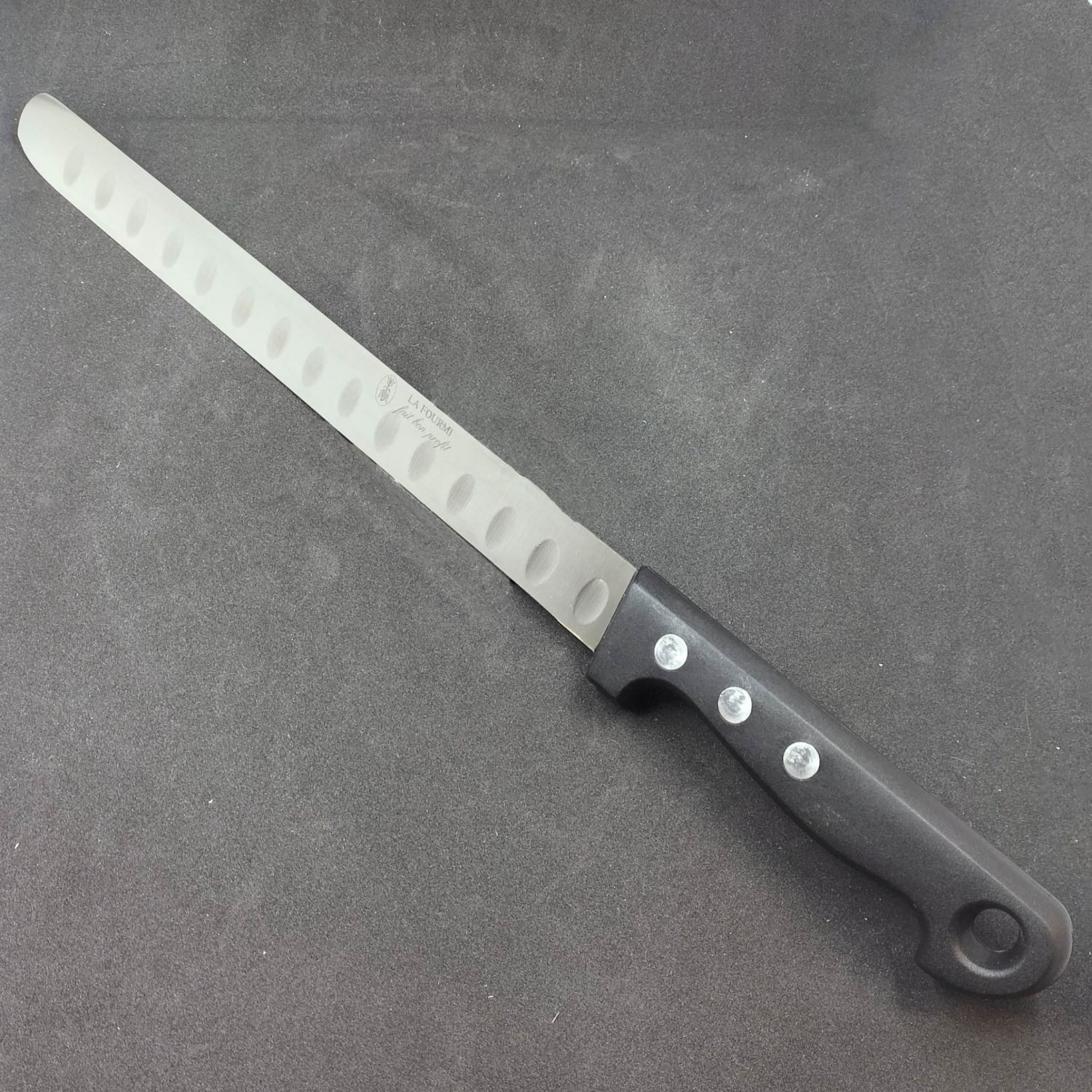 Couteau à jambon, peut couper votre jambon en fine tranche, la lame est en inox avec un manche en plastique et 3 rivets.