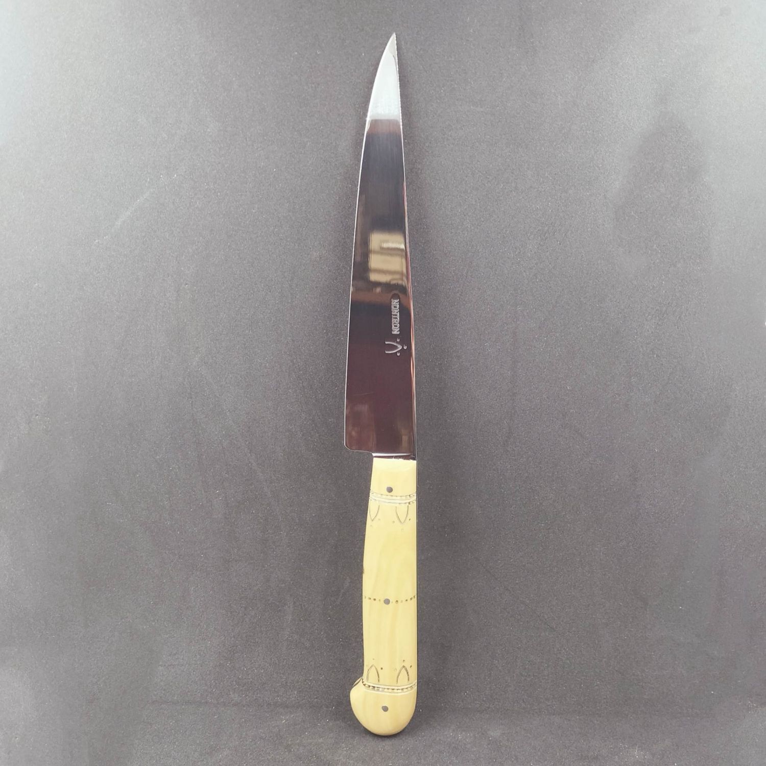 Couteau Nontron lame en acier pour couper tous types de viande avec son manche en buis pyrogravé. Fabriqué en France