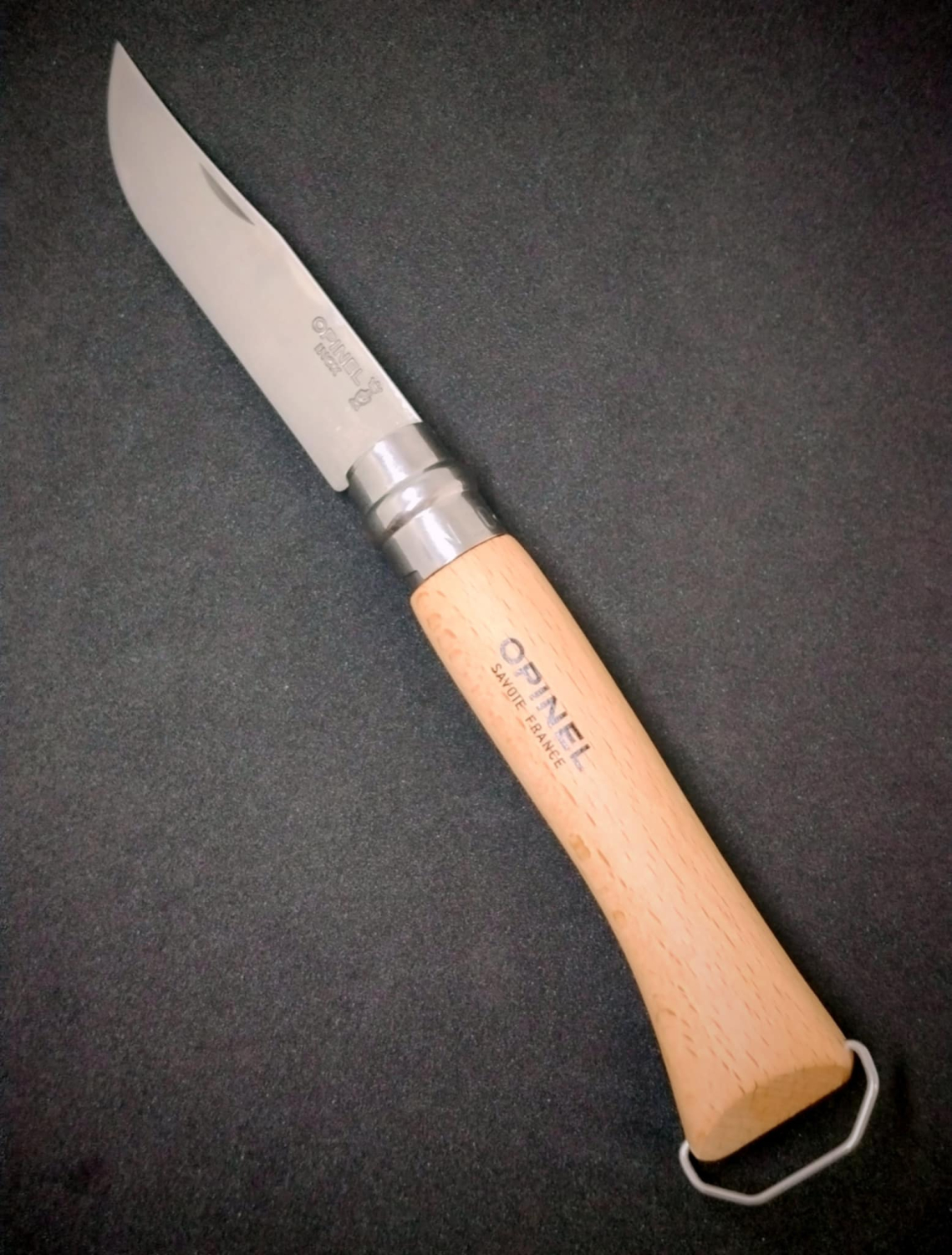 Couteau Opinel N°10 de Savoie-France avec un manche au bois de hêtre vernis et une bague de sécurité.