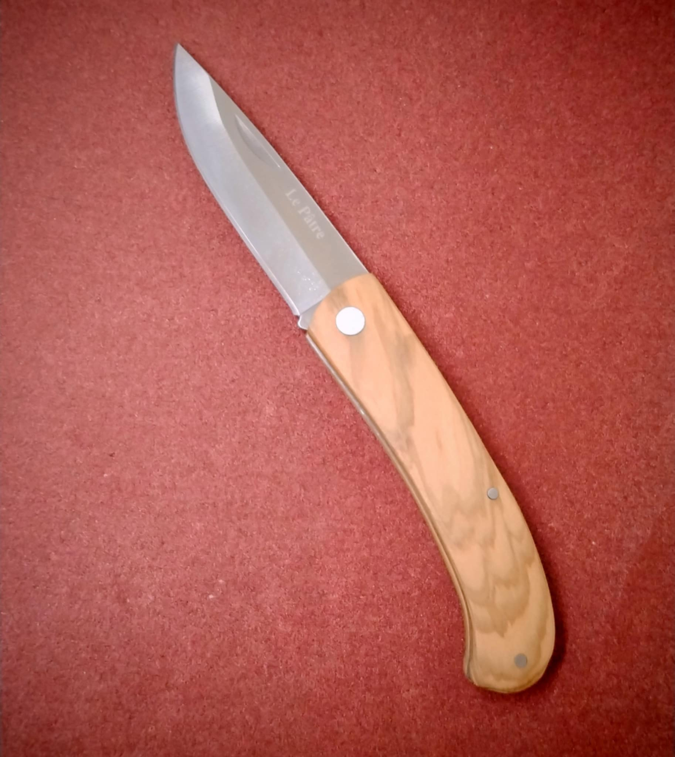 Couteau pliant lame inox avec son manque en bois. Fabriqué en France.
