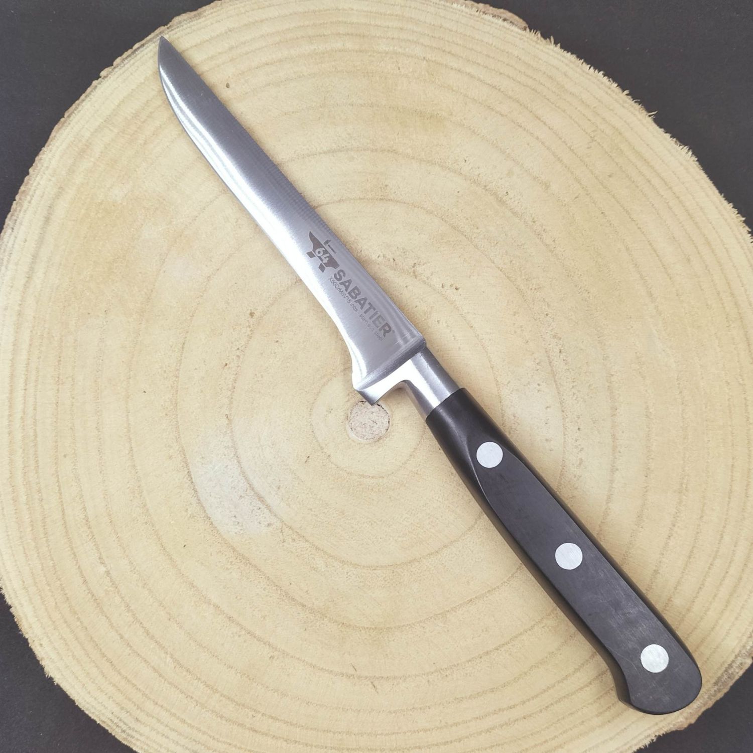 Couteau desosseur Sabatier, découper votre viande avec des os plus efficacement grâce à la garde du couteau retirer l'os et le découpage est plus facile. Lame en inox avec 3 rivets sur le manche.