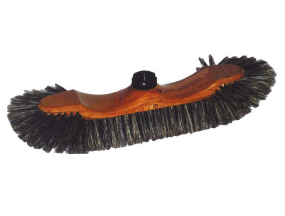 Balais en soie noire avec une monture vernis en teck. Il est idéal pour les sols en reliefs comme les tomettes ou carrelages, le nettoyage ce fait sans efforts.