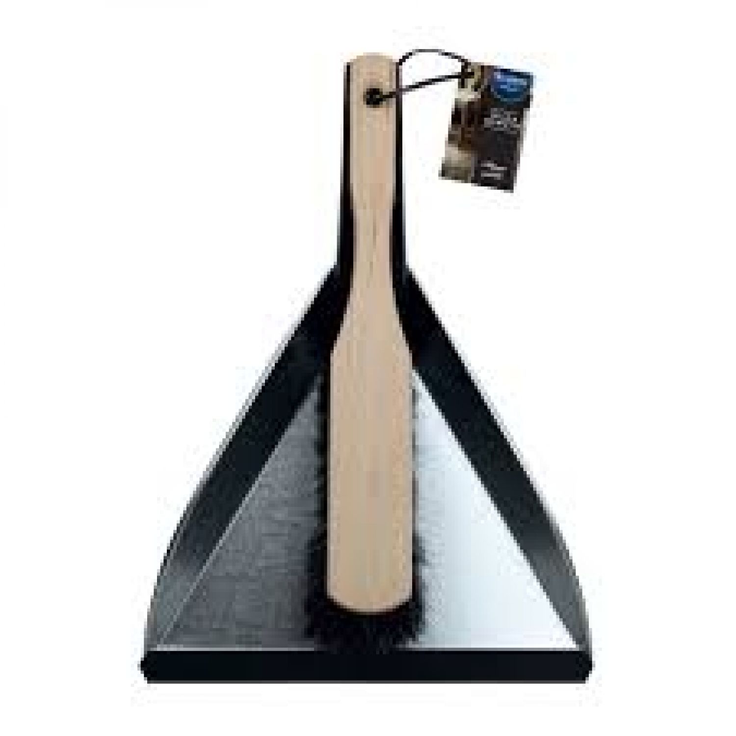 Assortiment de pelle et brosse, la brosse as été réalisé à partir de bois brut de hêtre, de crin de cheval (50%) et de fibres synthétiques quant à la pelle, elle est en aluminium galvanisé.