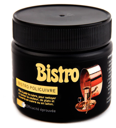 Bistro Policuivre est un nettoyant performant conçu pour restaurer et magnifier l’éclat des objets et surfaces en cuivre. Sa formule active dissout efficacement les oxydations, ternissures et résidus tout en respectant la matière. Idéal pour l’entretien de vos ustensiles, objets décoratifs, éléments anciens ou pièces métalliques en cuivre, il redonne une brillance profonde et durable. Facile à utiliser, il offre un nettoyage précis et efficace pour un cuivre propre, éclatant et parfaitement entretenu.