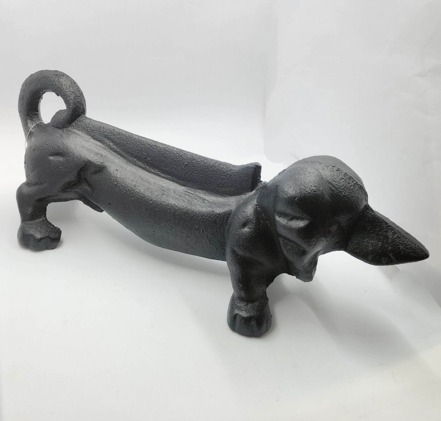 Gratte pied en fonte noir qui est en forme de Teckel, permet de gratter les chaussures ou bottes efficacement.