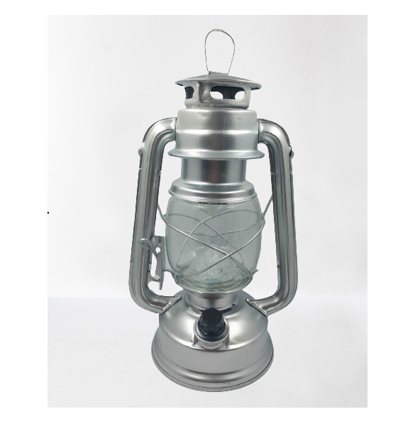 Lanterne de couleur grise à LED, plus besoin de recharger votre lampe avec du liquide à pétrole ou de changer la mêche, il suffit simplement de 4 piles AA ( non fournis).