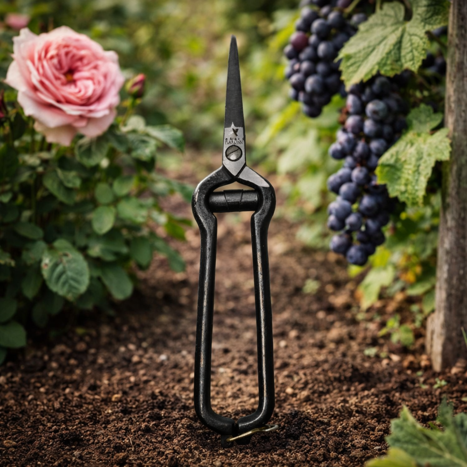 Cette épinette, petit sécateur polyvalent, est idéale pour les travaux fins au jardin et les vendanges. Sa lame fine et tranchante permet une coupe nette des grappes de raisin, des tiges délicates ou des branches épineuses. Solide et rustique, il fait des heureux.