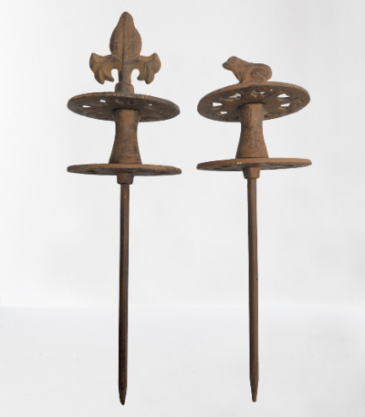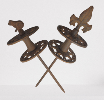 En fonte patinée de couleur marron effet rouille, résistant et robuste ce guide tuyau ne craint pas la rouille.