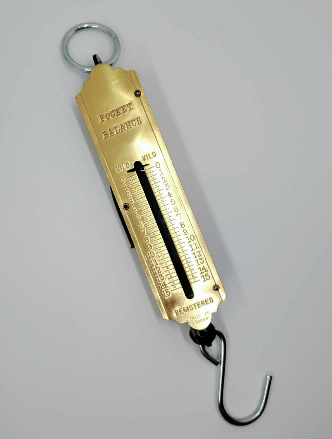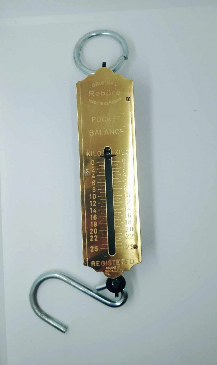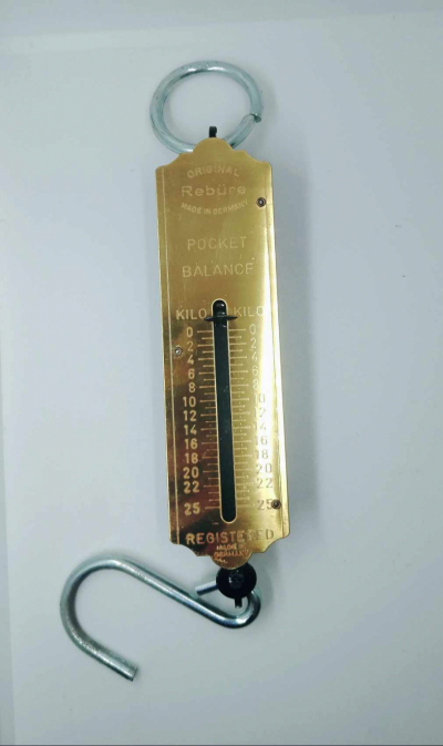 Romaine de Poche, Peson, balance de poche, gradué. Idéal pour avoir sa propre balance sur sois. Une boucle pour l'accrocher ou le tenir vous même et son crochet pour faire la peser.