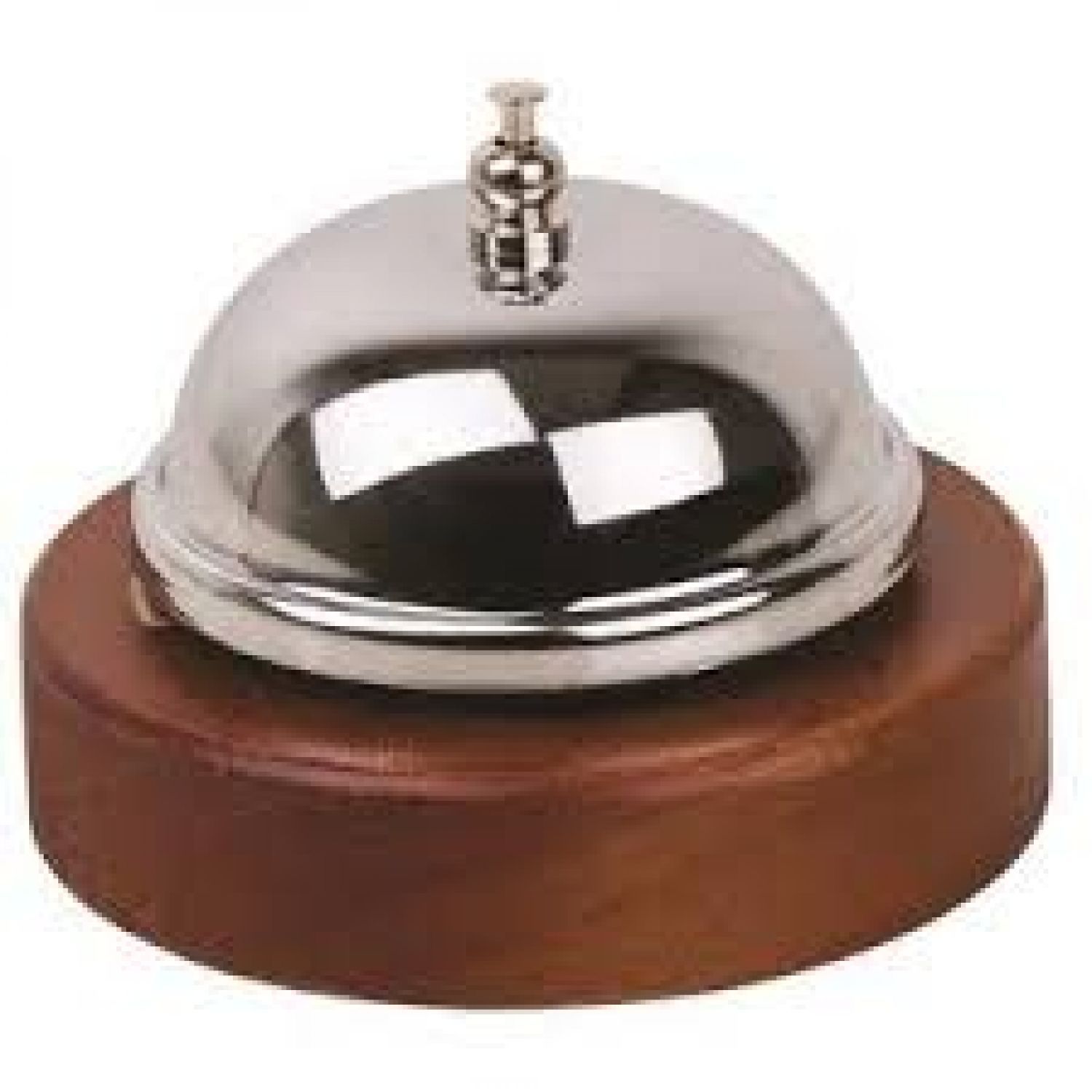 Modèle rétro pour cette sonnette à poser sur les comptoirs de café , de magasins ou pourquoi pas à la maison. Sonnette avec le socle en bois.