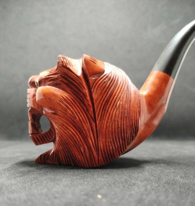 La véritable pipe de Saint Claude: Fourneau sculptée en forme de tête de lion en bois de buyere .
