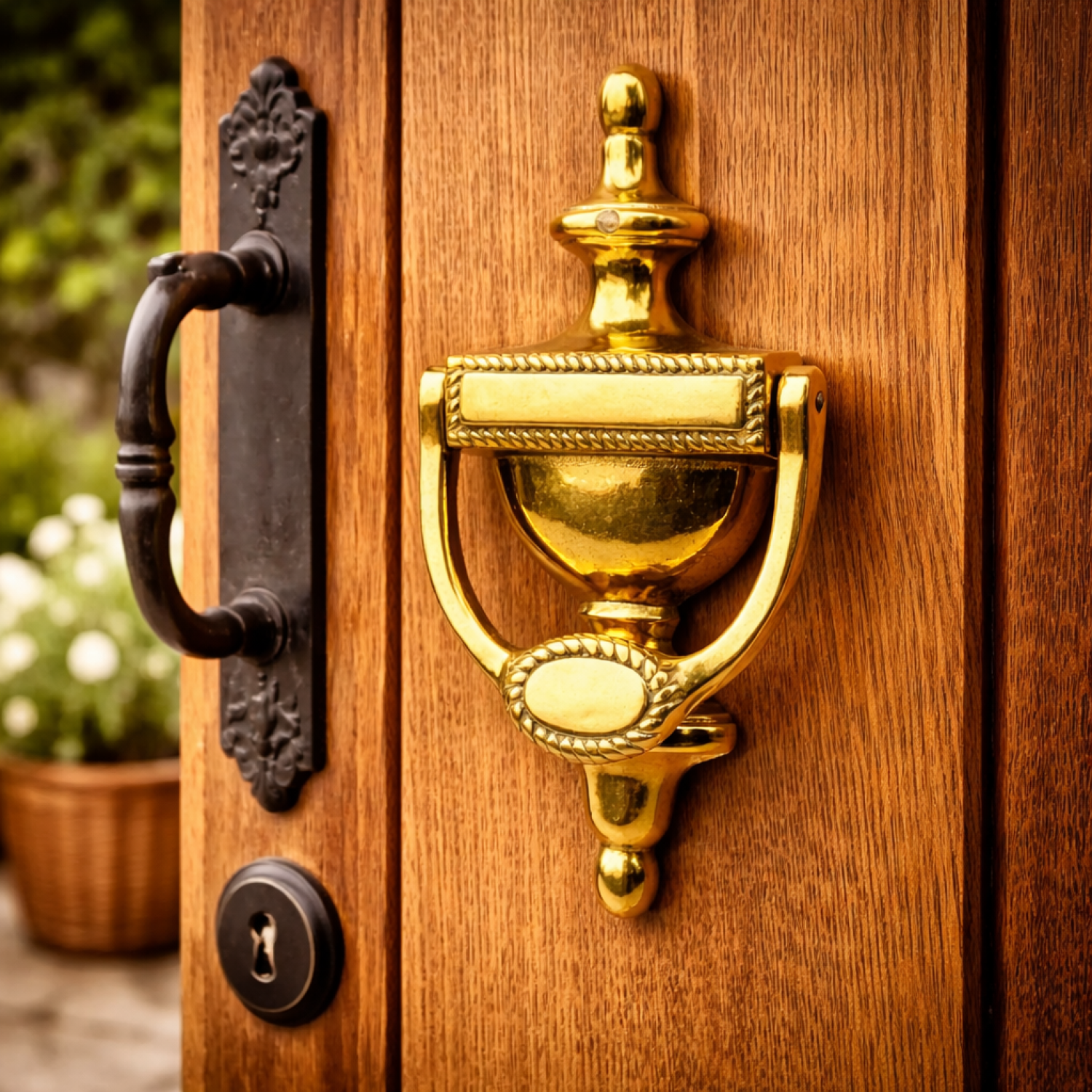 L'heurtoir en laiton massif est un accessoire traditionnel et élégant pour portes d'entrée. Fabriqué en laiton de qualité, il allie robustesse, durabilité et esthétique. Son design classique apporte une touche de charme et de prestige à votre porte, tout en offrant une fonction pratique pour annoncer les visiteurs sans effort. Facile à installer, il convient aussi bien aux maisons anciennes qu'aux projets de rénovation pour un rendu authentique et raffiné.