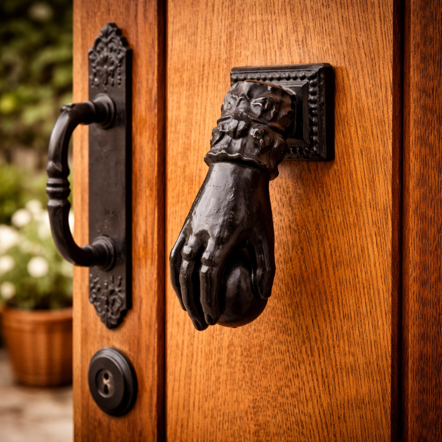 Le heurtoir en forme de main en fonte d'acier noir brillant allie élégance et robustesse pour votre porte d'entrée. Fabriqué en acier solide, il résiste aux usages fréquents et aux intempéries tout en conservant son brillant raffiné. Son design original en forme de main apporte une touche décorative unique et sophistiquée à votre extérieur ou intérieur. Facile à installer, ce heurtoir permet de frapper votre porte avec style et fonctionnalité, transformant un simple accessoire en véritable élément de charme pour votre maison.